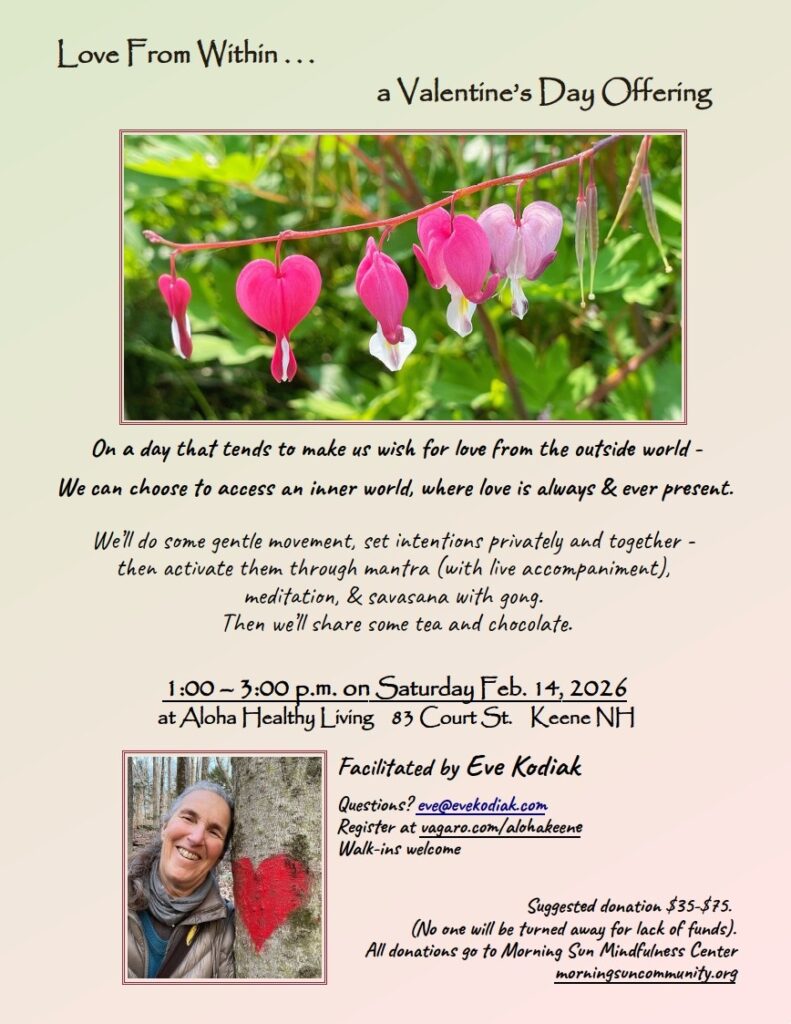 We’ll let our intentions flow into body, mind, and heart with yoga mantra, chanting and meditation, savasana with gong——serving